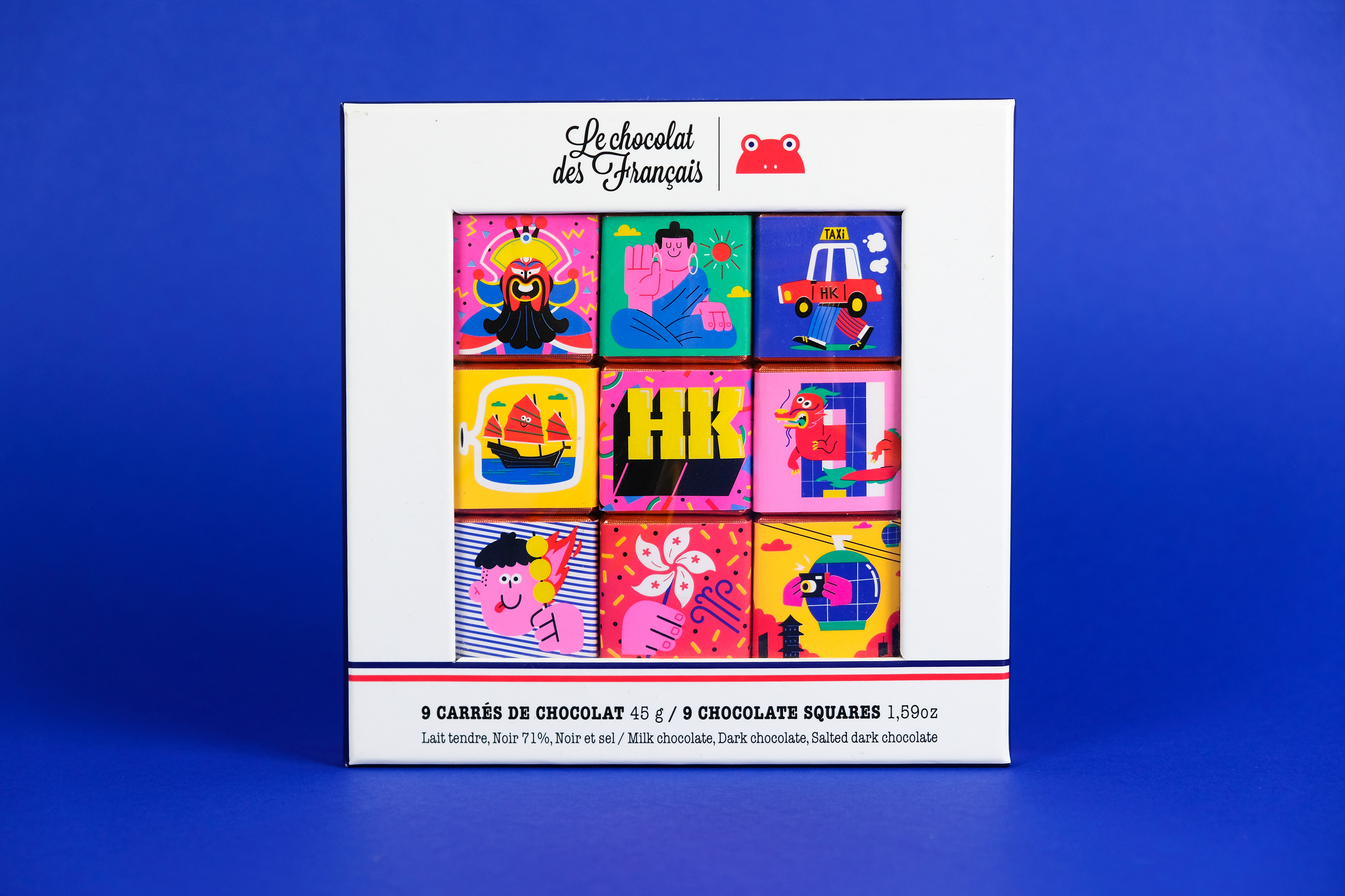 I was called by confectionary extraordinaire Chocolate des Français to illustrate a box of 9 chocolate squares and a big chocolate bar to be sold in Hong Kong and celebrate it´s culture.