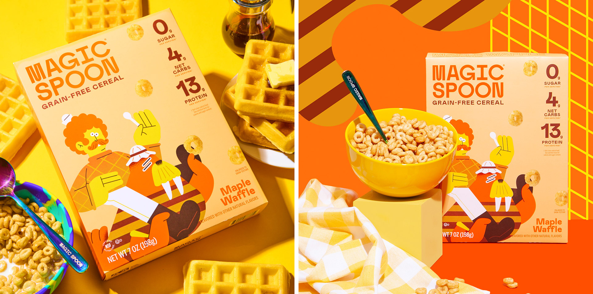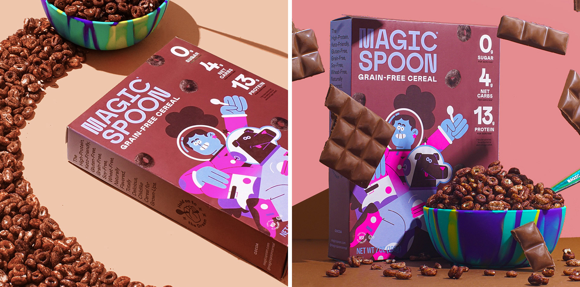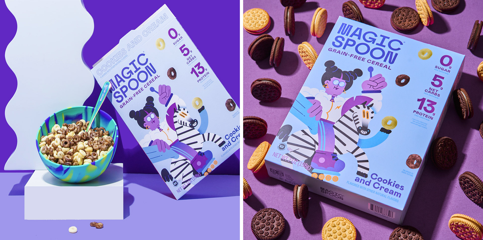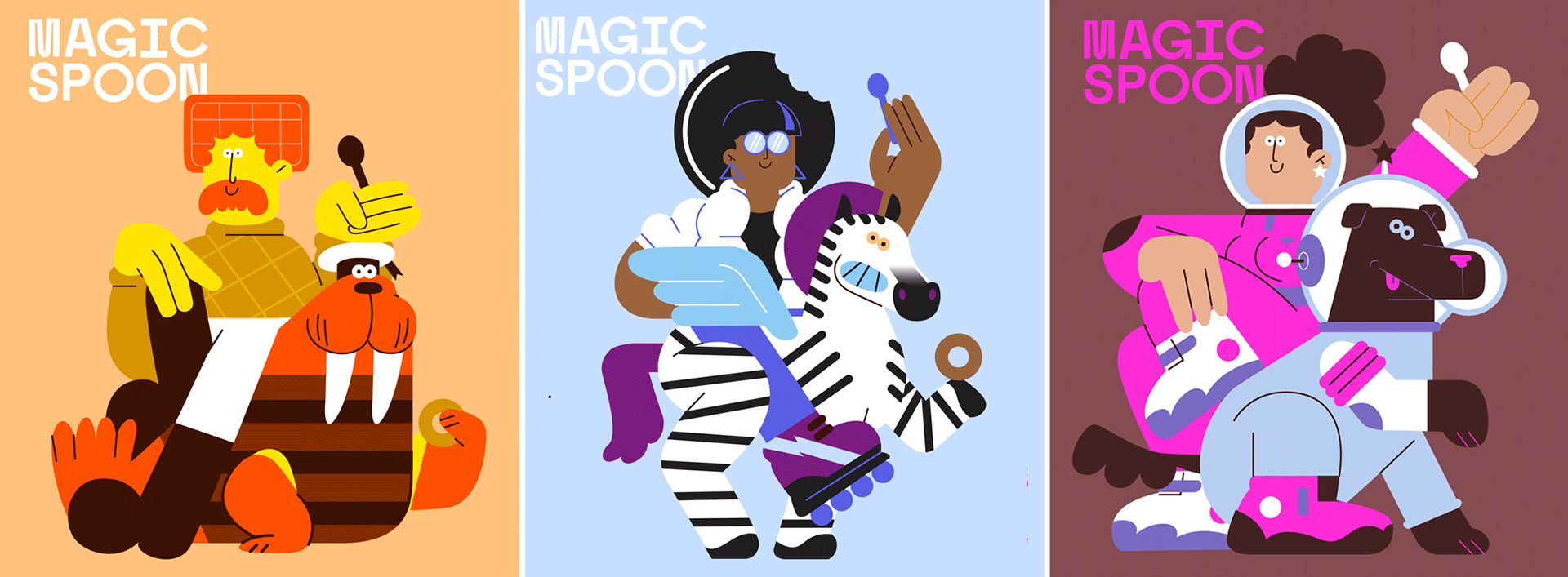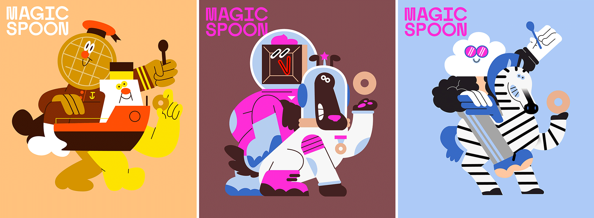 I was called by the awesome team at Gander Inc (www.takeagander.com) to illustrate the back and front of two new flavours (Cookies and Cream and Waffle) and a classic one (Cocoa) for Magic Spoon Cereal. It was a blast!